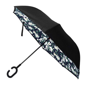 Parquet Double Layer Inverted Umbrellas C-Shaped Handle Reverse Folding Windproof Umbrella